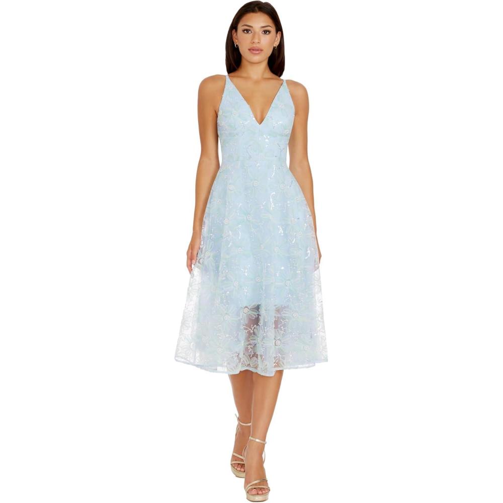 Dress The Population Womens Audrey Fit and Flare Midi Dress(Powder Blue Multi)