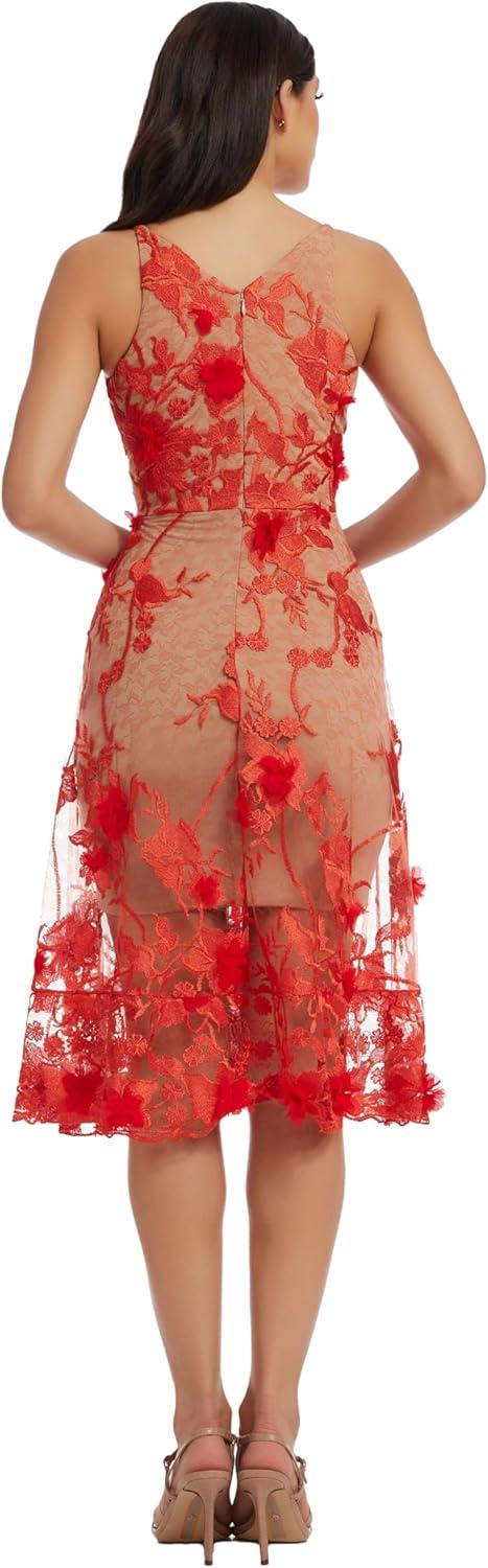 Dress the Population Womens Audrey Midi Plunging Dress(Poppy/Nude)