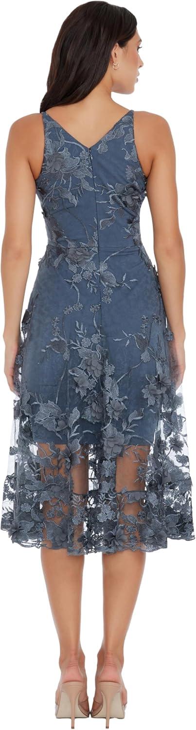 Dress the Population Womens Audrey Midi Plunging Dress(Steel)
