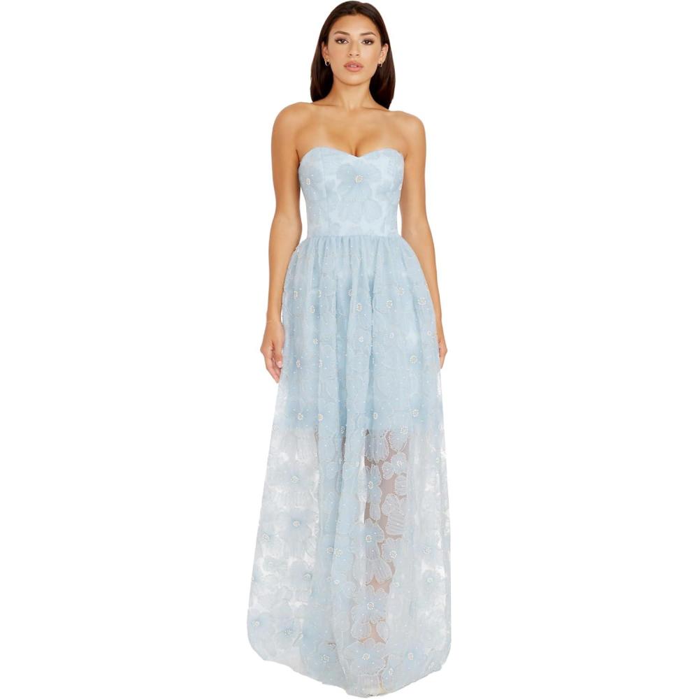 The Audrina Gown features a strapless demi bustier, designed for a perfect fit and a flattering flare.