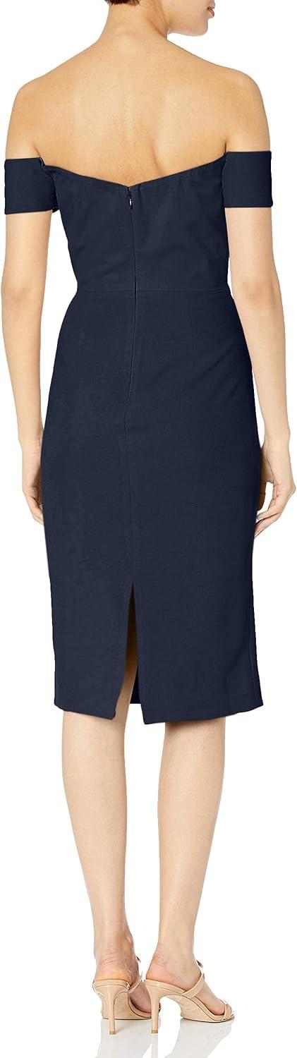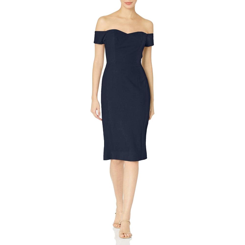 Dress the Population Womens Bailey Off The Shoulder Sweetheart Bodycon Midi Sheath Dress(Midnight Blue)