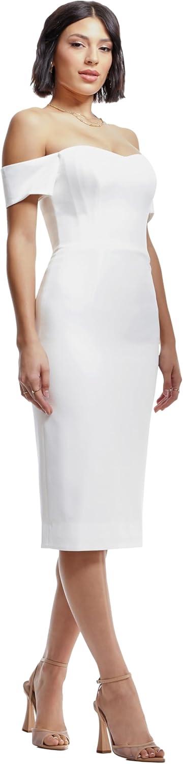 Dress the Population Womens Bailey Off The Shoulder Sweetheart Bodycon Midi Sheath Dress(Off-white)