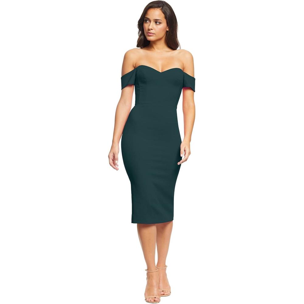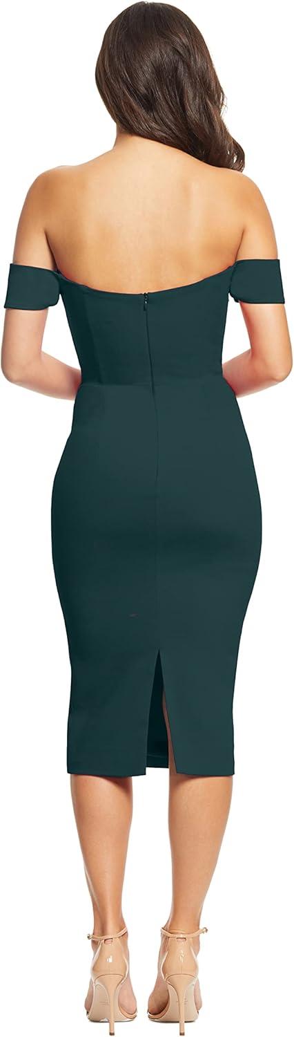Dress the Population Womens Bailey Off The Shoulder Sweetheart Bodycon Midi Sheath Dress(Pine)