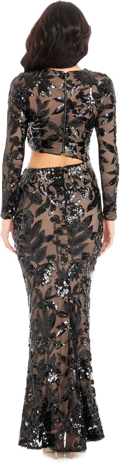 Elevate your style with our Candace Dress. This stunning dress features a flattering mermaid silhouette, with a unique waist cutout detail to accentuate your figure. The long sleeves and round neck provide a sophisticated touch to this maxi dress. Perfect for any special occasion, this dress will make you feel confident and elegant all night long.