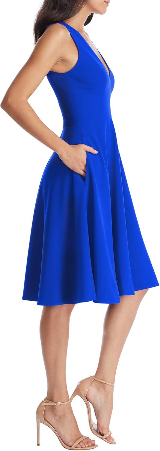 Dress the Population Women’s Catalina Solid Sleeveless Fit & Flare Midi Dress(Electric Blue)