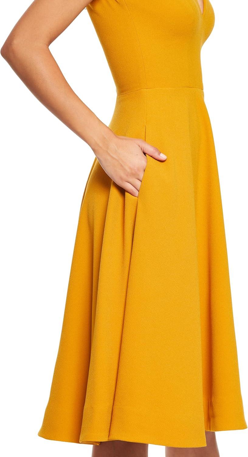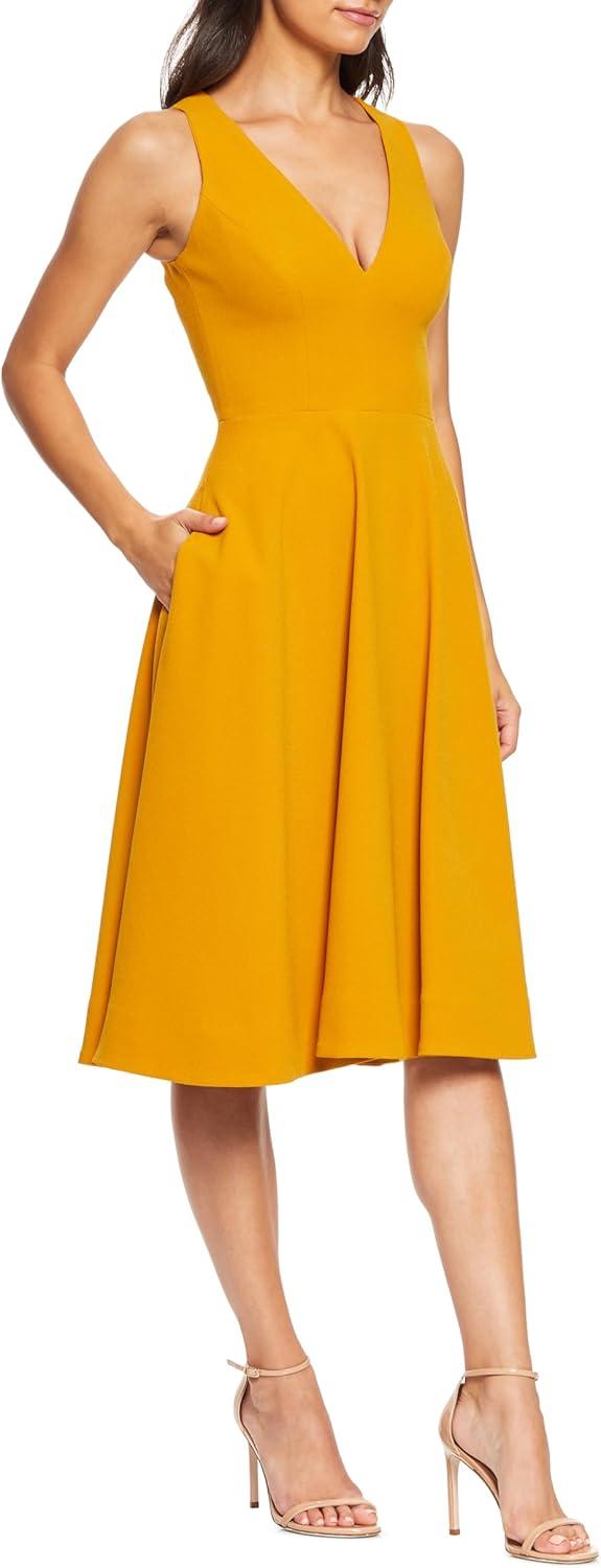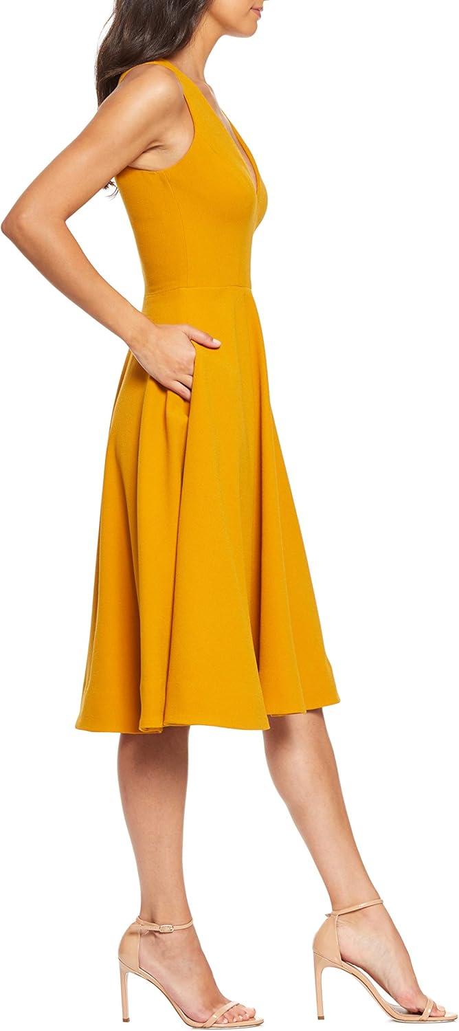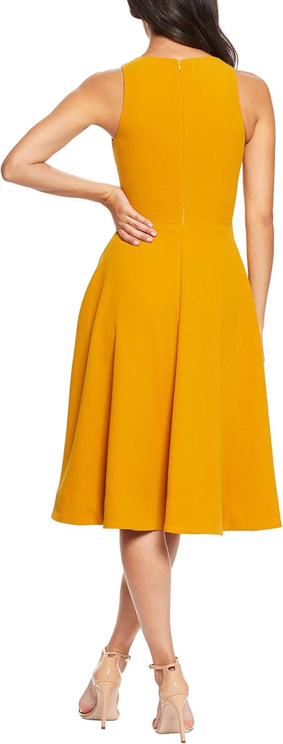 Dress the Population Women’s Catalina Solid Sleeveless Fit & Flare Midi Dress(Honey)