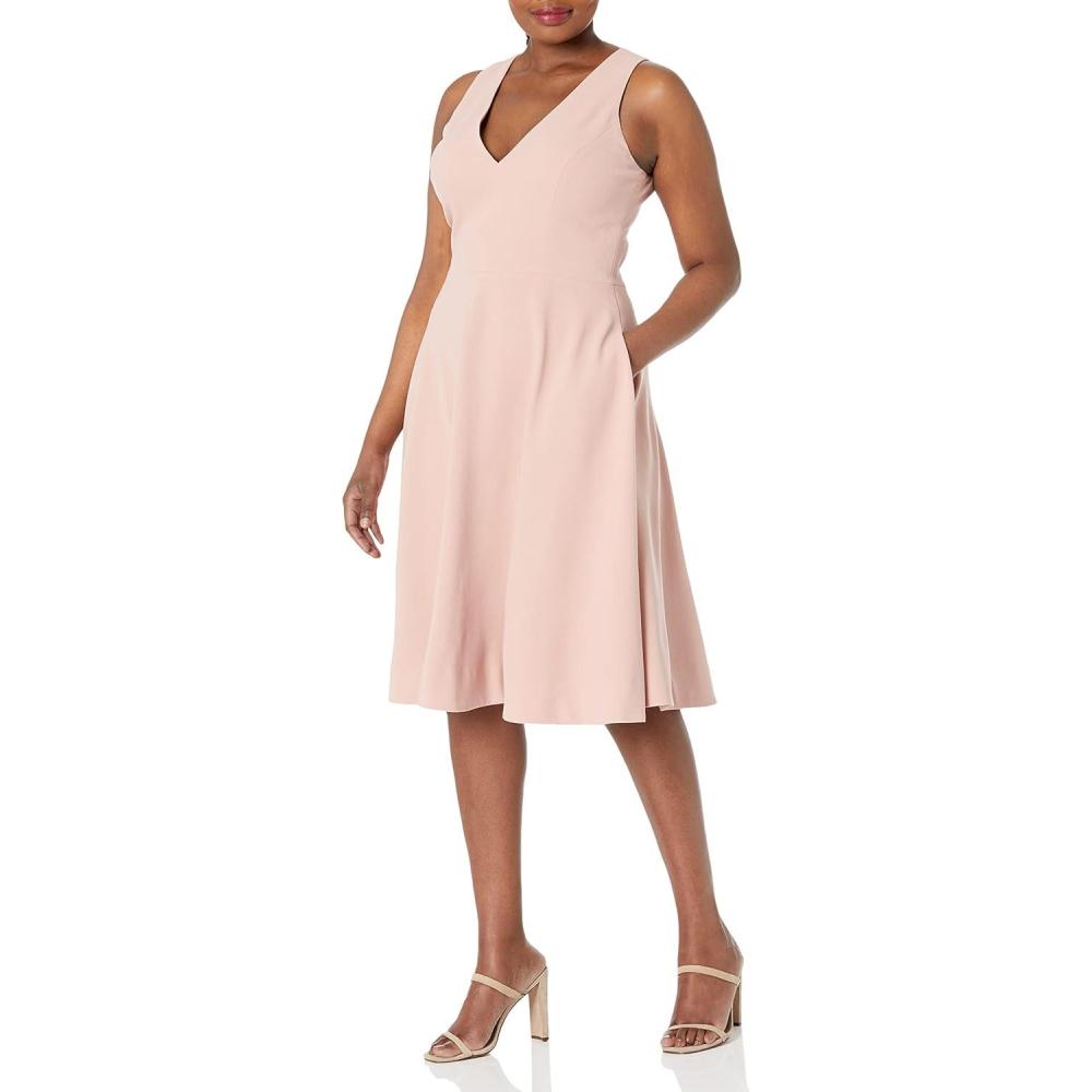 Dress the Population Women’s Catalina Solid Sleeveless Fit & Flare Midi Dress(Powder Blush)
