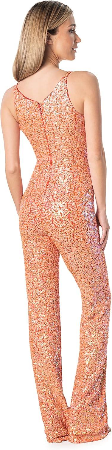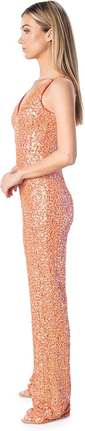 Dress the Population Women’s Charlie Plunging Sequin Sleeveless Jumpsuit(Apricot Multi)