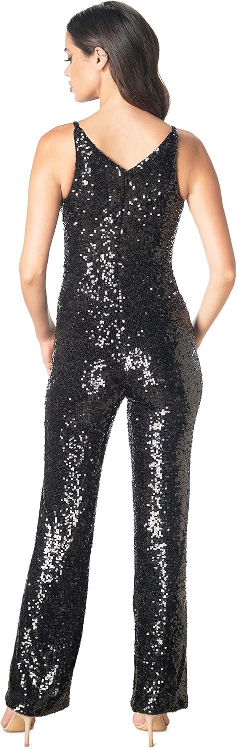 Dress the Population Women's Charlie Plunging Sequin Sleeveless Jumpsuit(Black)