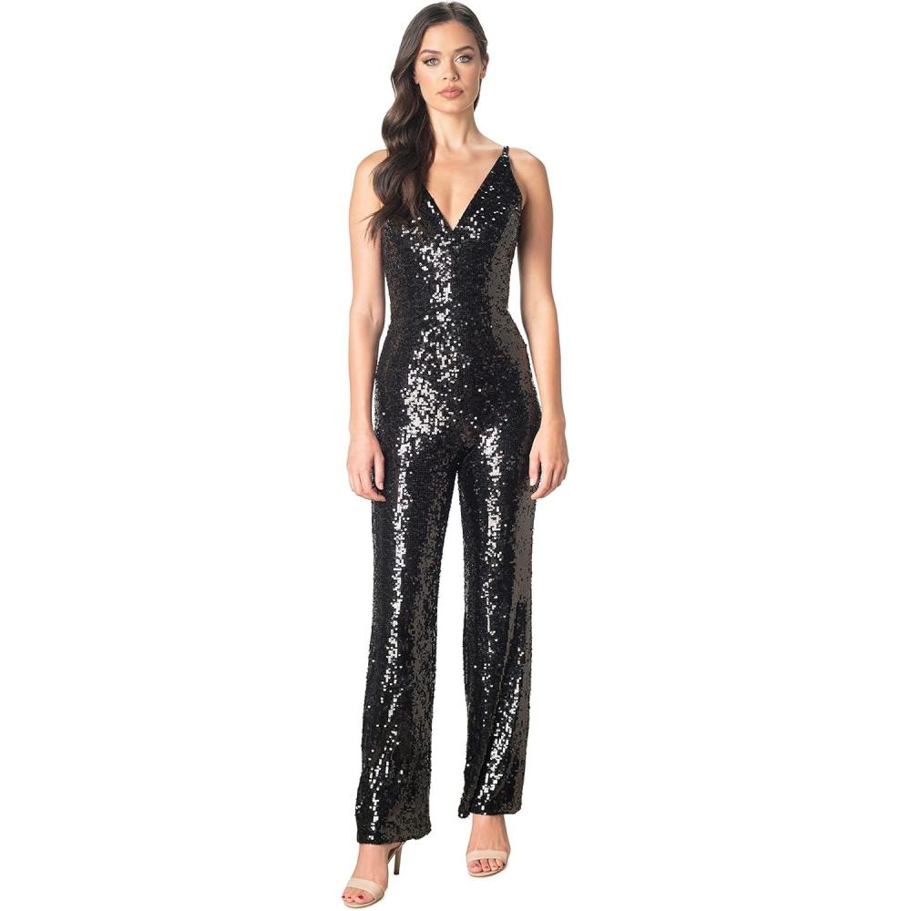 Dress the Population Women’s Charlie Plunging Sequin Sleeveless Jumpsuit(Black)