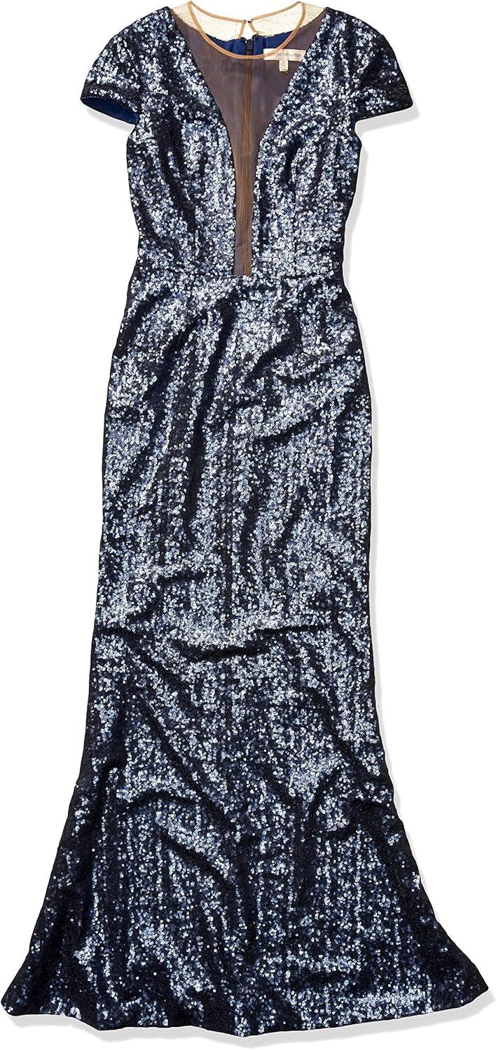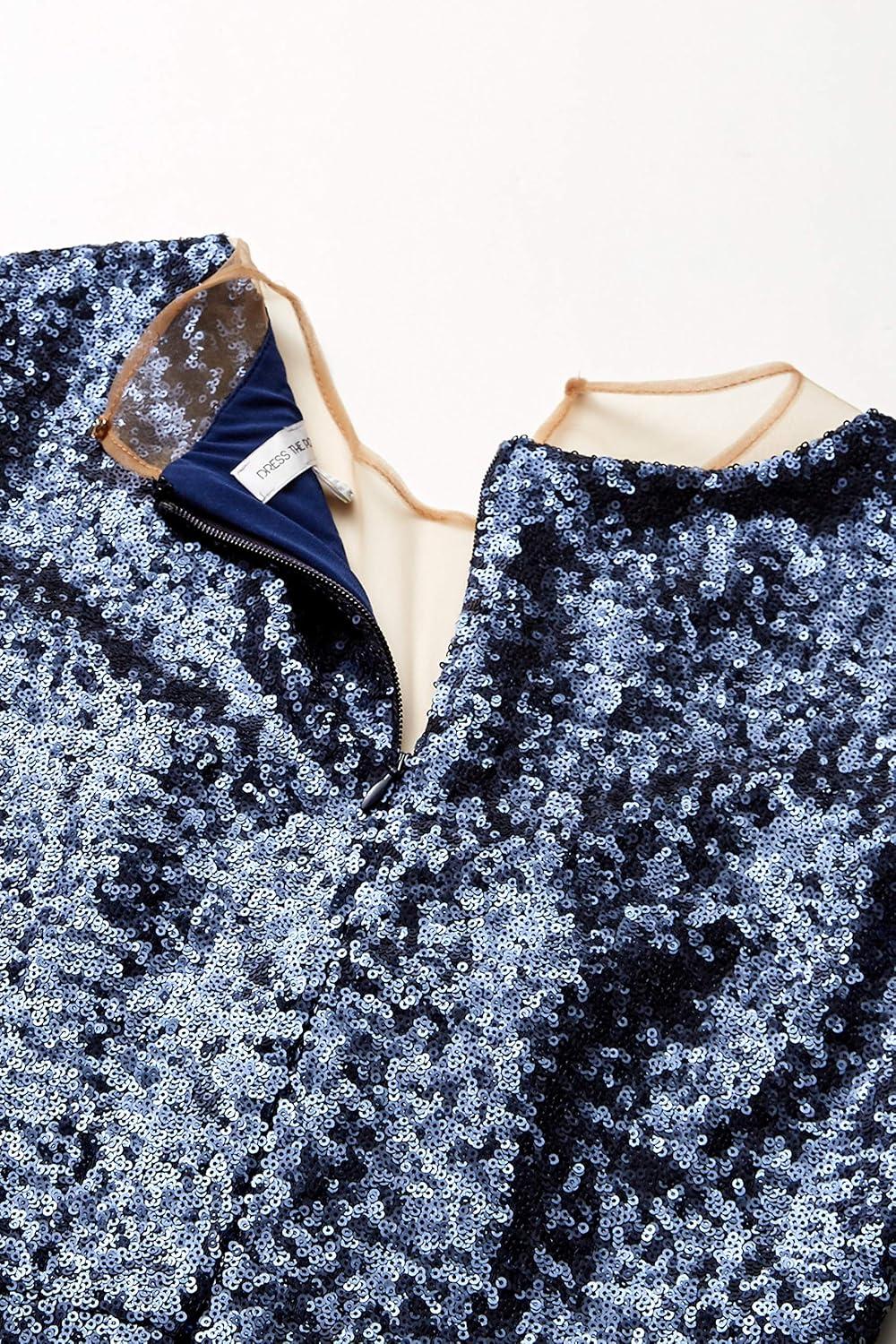 Dress the Population Womens Emery Long Sleeve Stretch Sequin Midi Sheath(Navy)
