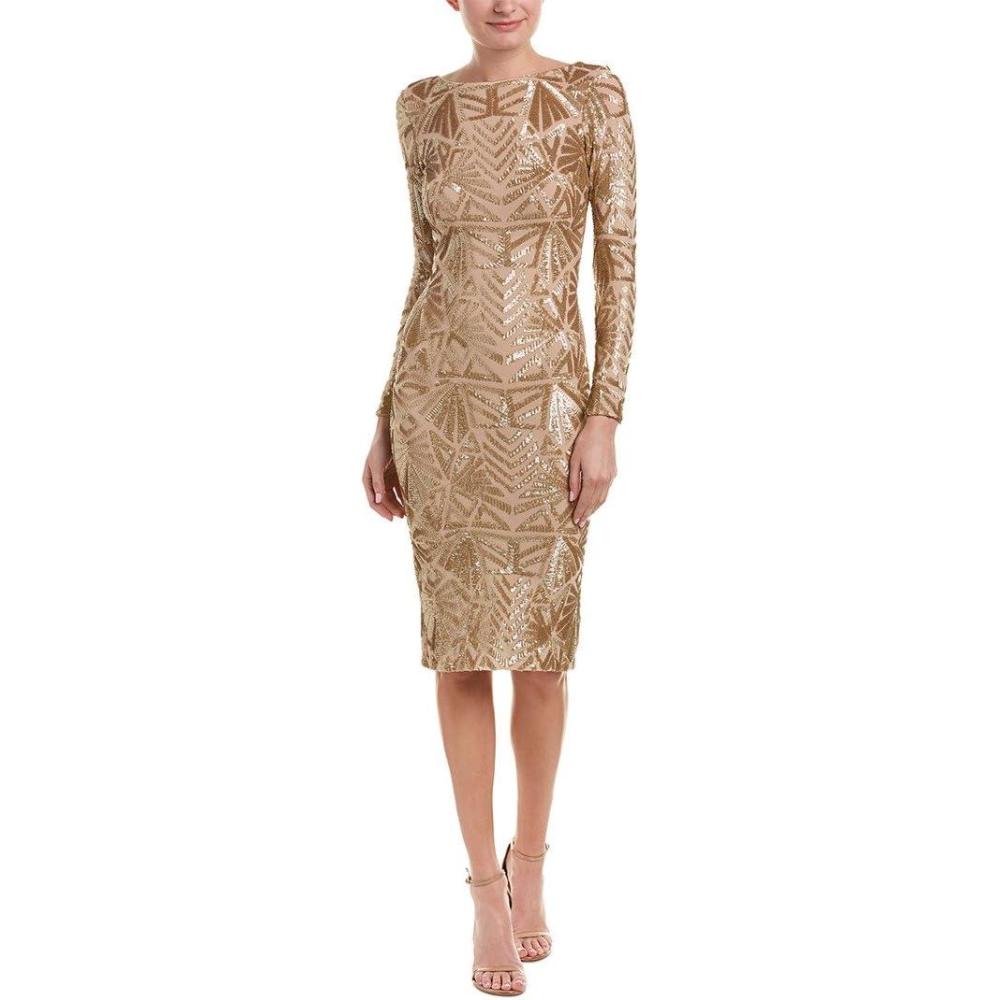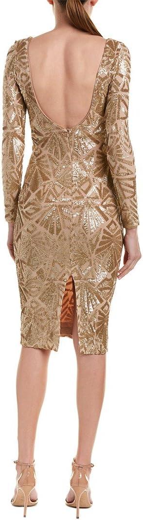Dress the Population Womens Emery Long Sleeve Stretch Sequin Midi Sheath(Brush Gold)