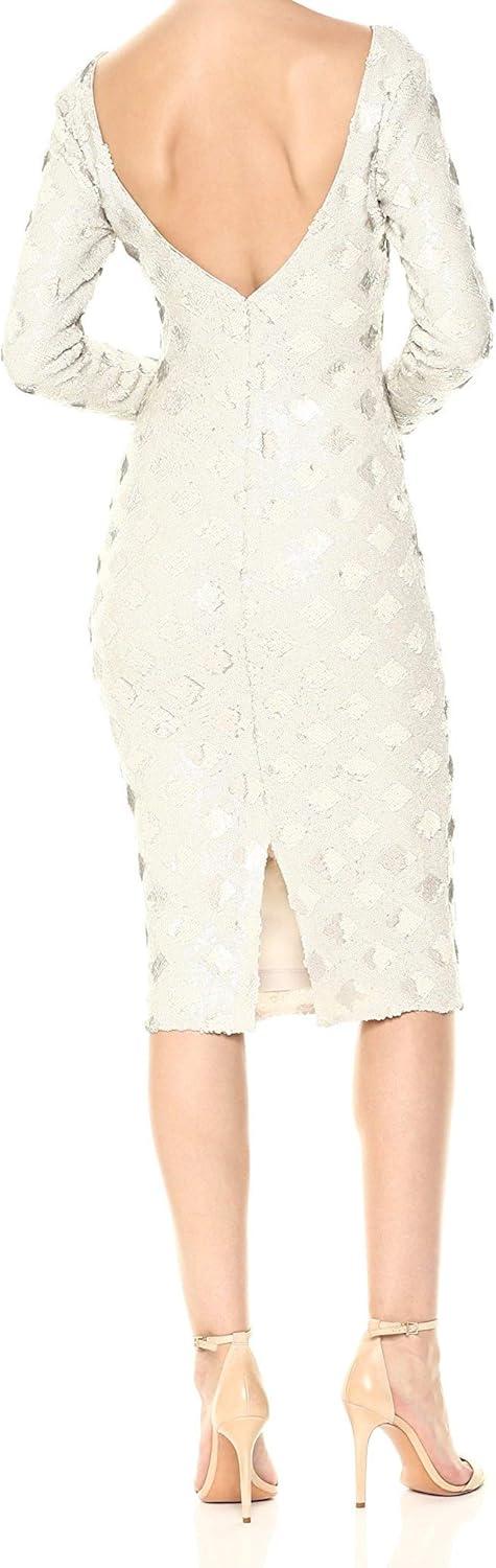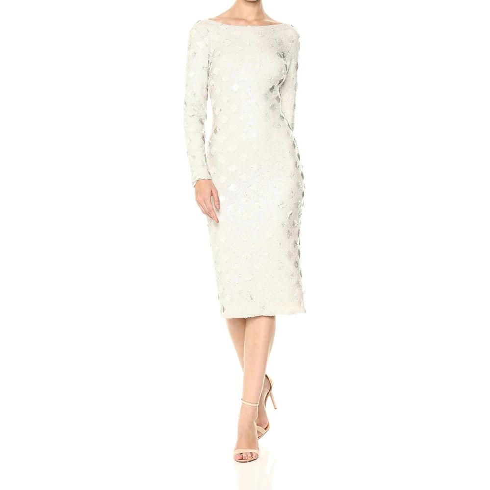 Dress the Population Womens Emery Long Sleeve Stretch Sequin Midi SheathDress(Bone Print)