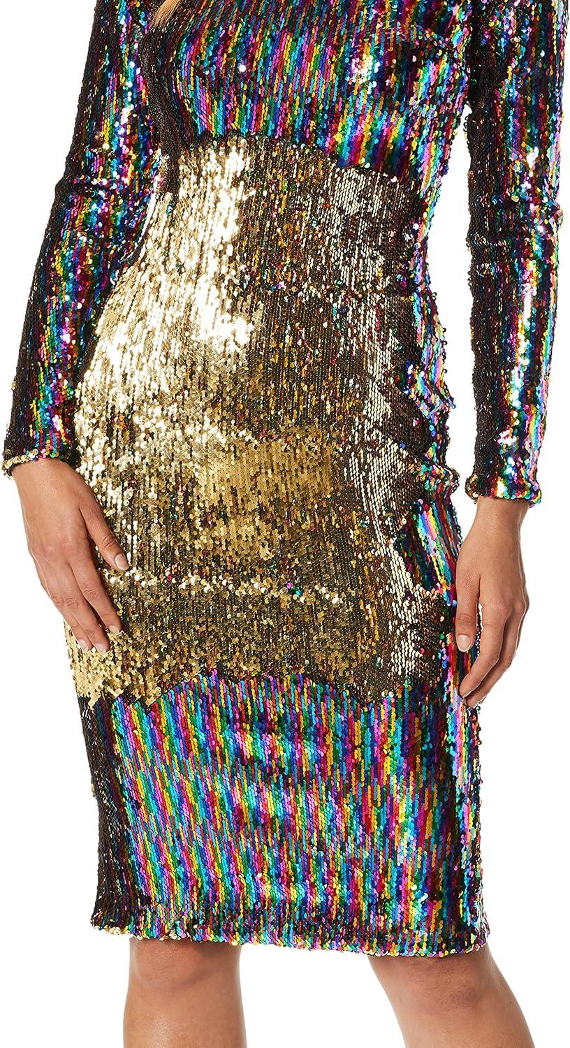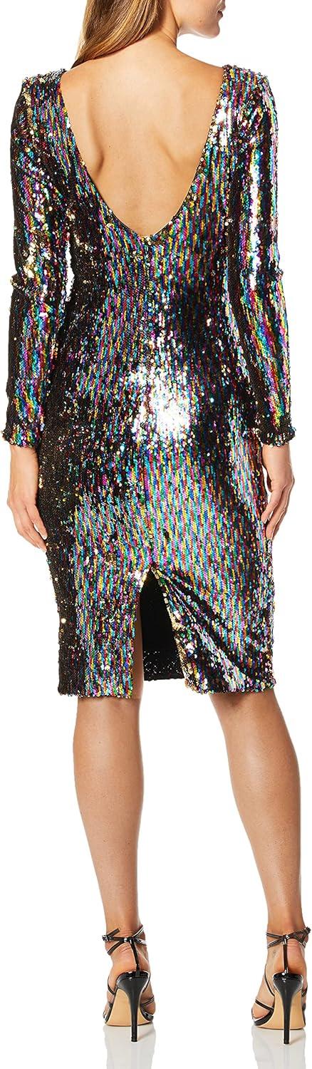 Dress the Population Womens Emery Long Sleeve Stretch Sequin Midi SheathDress(Confetti)