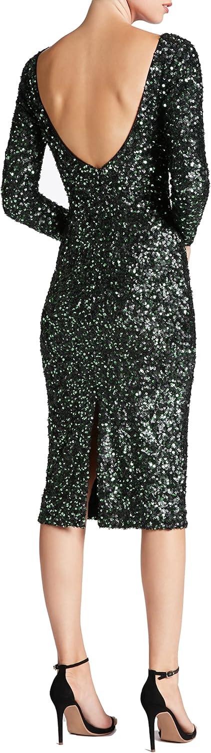 imageDress the Population Womens Emery Long Sleeve Stretch Sequin Midi SheathDressEmeraldBlack