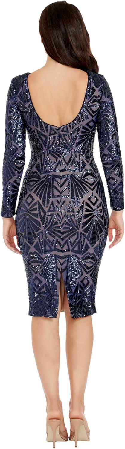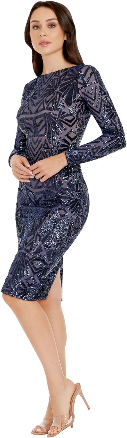 Dress the Population Womens Emery Long Sleeve Stretch Sequin Midi Sheath(Navy)