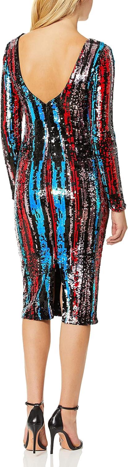 Dress the Population Womens Emery Long Sleeve Stretch Sequin Midi Sheath(Silver/Black)