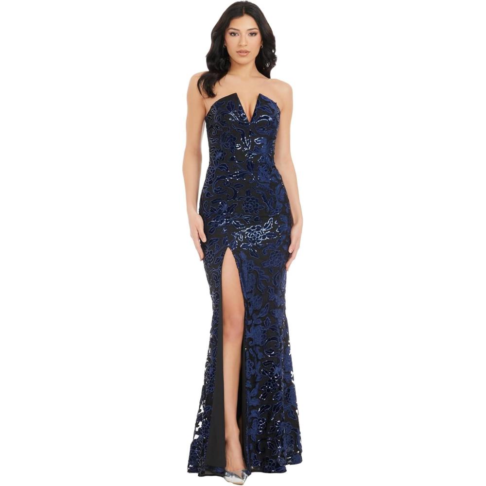 Dress The Population Womens Fernanda Bodycon Maxi Dress(Navy-black)