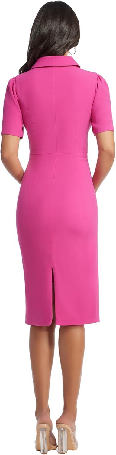 Dress the Population Womens Gloria Collared Zip Neck Short Sleeve Bodycon Midi Dress(Bright Fuchsia)