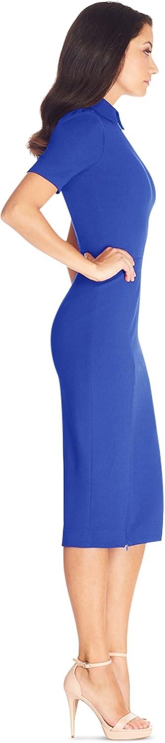 Dress the Population Womens Gloria Collared Zip Neck Short Sleeve Bodycon Midi Dress(Cobalt)