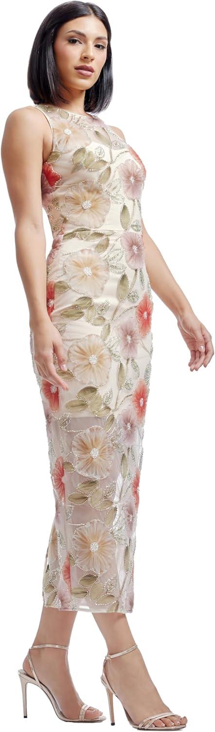 Dress The Population Womens Helena Bodycon Midi Dress(Champagne Multi)