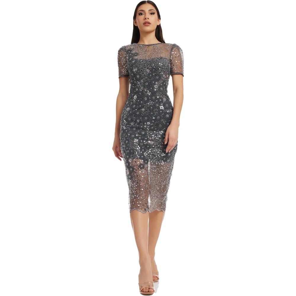 Dress the Population Women's Lia Bodycon Midi Dress(Steel)