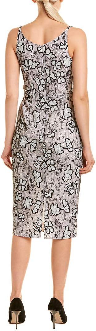 Dress the Population Womens Lyla Plunging Sleeveless Fitted Midi Sheath Dress(White/Black)