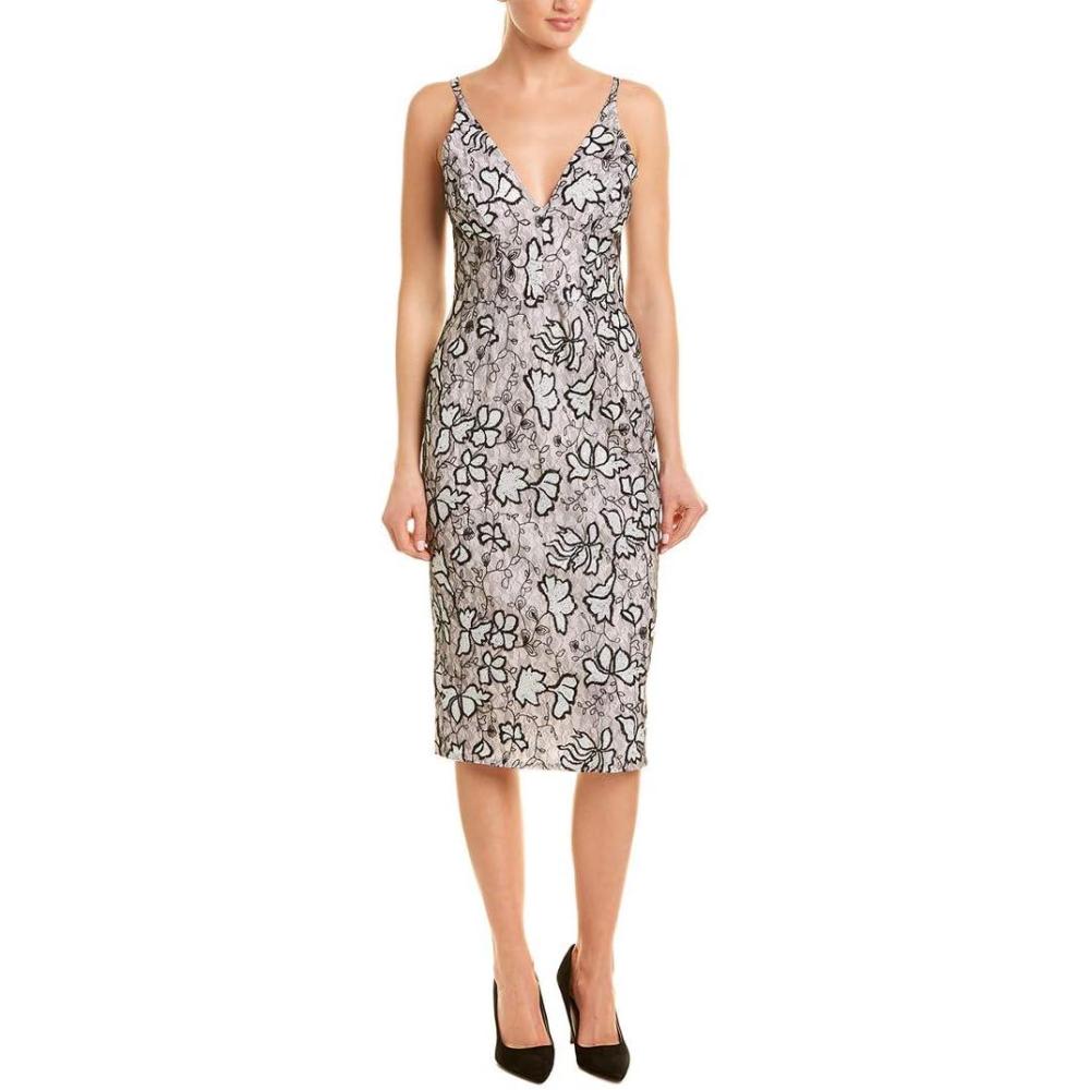 imageDress the Population Womens Lyla Plunging Sleeveless Fitted Midi Sheath DressWhiteBlack