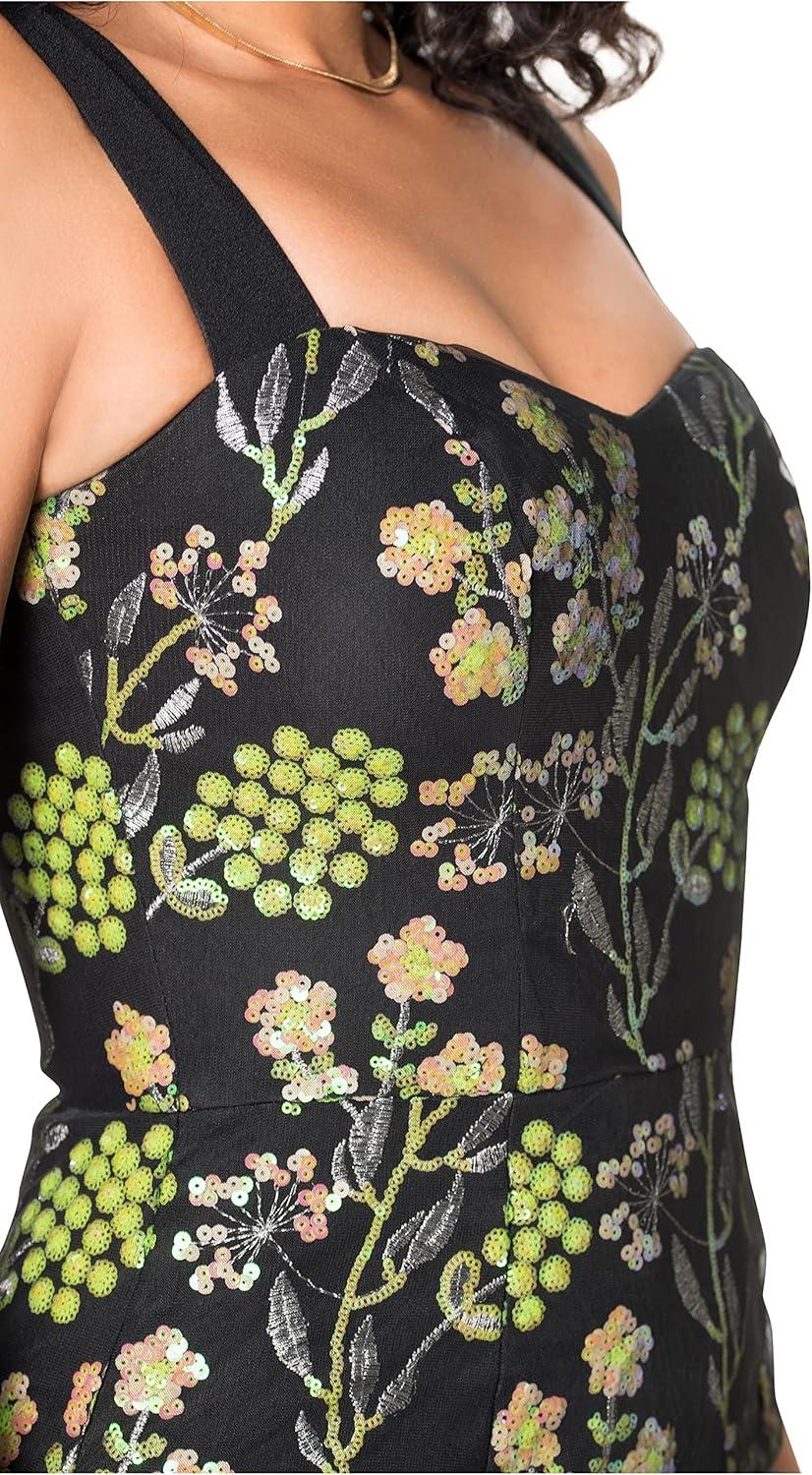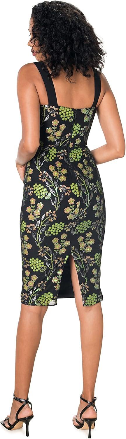 Dress the Population Women’s Nicole Sleeveless Bodycon Stretch Midi Sheath Dress(Dark Lemongrass Multi)