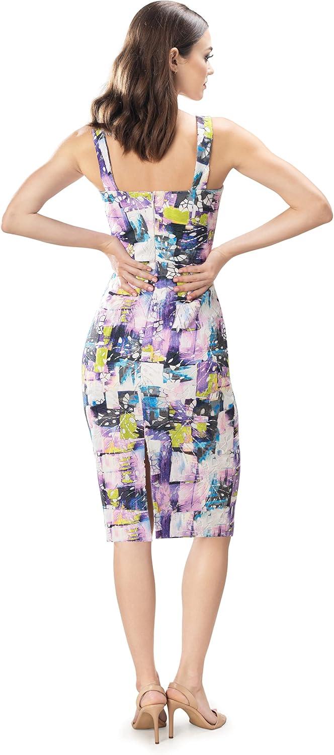 Dress the Population Women’s Nicole Sleeveless Bodycon Stretch Midi Sheath Dress(Dark Lemongrass Multi)