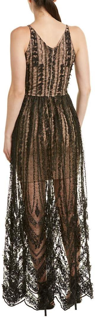 Dress the Population Women's Sidney Sleeveless Plunge Neckline Fit and Flare Maxi Dress(Black/Nude Chelsea)