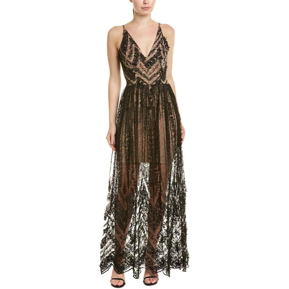 imageDress the Population Womens Sidney Sleeveless Plunge Neckline Fit and Flare Maxi DressBlackNude Chelsea