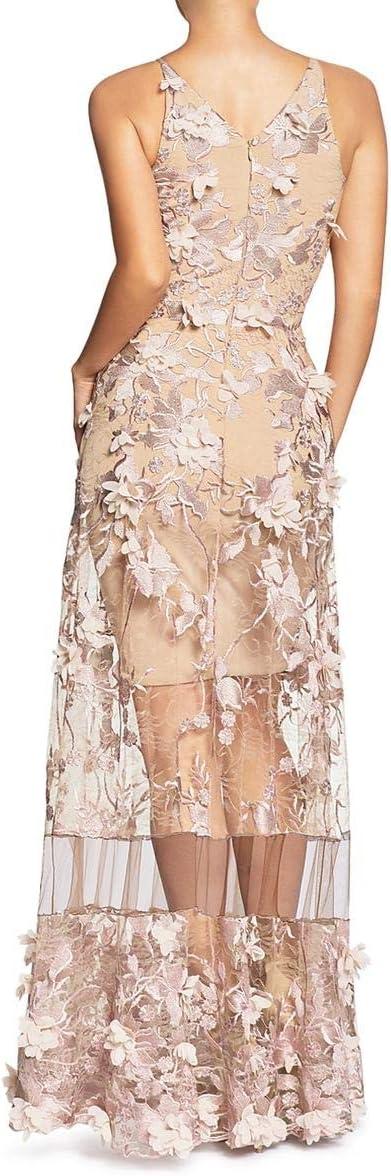 Dress the Population Women’s Sidney Sleeveless Plunge Neckline Fit and Flare Maxi Dress(Cream/Nude Gigi)